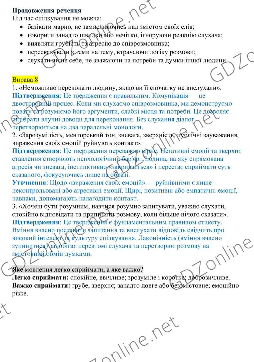 Українська мова 8 клас Голуб 2025 відповіді
